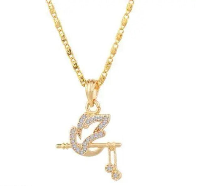 Graceful and unique, this gold-plated flute pendant with chain is crafted from high-quality brass and adorned with sparkling Cubic Zirconia (American Diamonds). A perfect blend of tradition and style, ideal for daily wear or gifting.