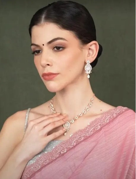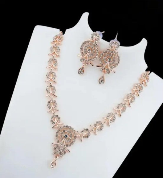 Chic and timeless, this necklace and earrings set features a rose gold-plated finish on a durable alloy base, adorned with sparkling Cubic Zirconia (American Diamonds). Designed with adjustable sizing, it's perfect for both everyday elegance and special occasions.