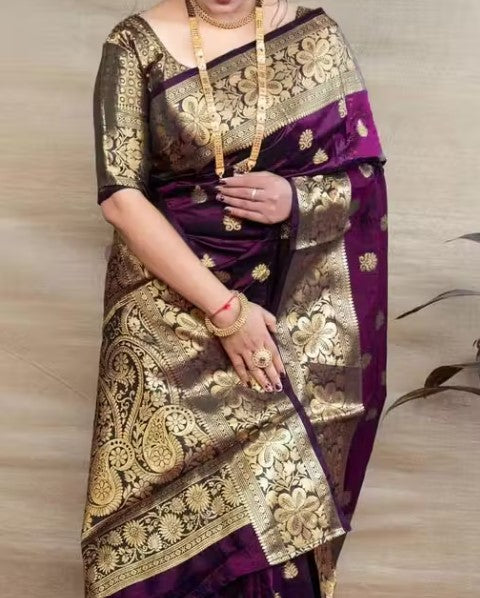 Banarasi saree collection featuring elegant zari-woven patterns and a matching art silk blouse. A perfect choice for parties, weddings, and festive occasions.