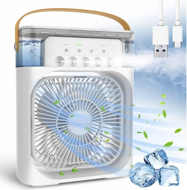 Stay cool and refreshed with this 3-in-1 mist fan, air cooler, and humidifier. USB-powered and lightweight, it’s perfect for home, office, or travel. The water spray adds extra cooling while humidifying dry air—ideal for hot days and dry spaces.