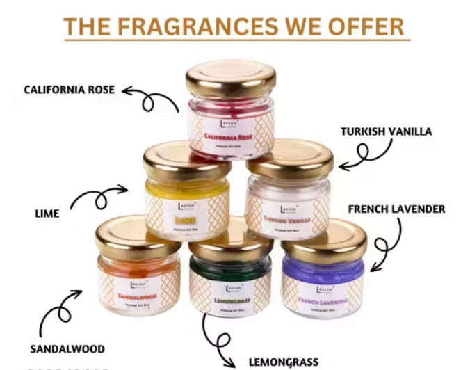 Elevate your space with Home Sajawat’s premium scented jar candles, featuring 6 soothing fragrances: Rose, Lemongrass, Jasmine, Vanilla, Lavender, and Sandalwood. Perfect for home décor, gifting, or creating a calming vibe anytime.
