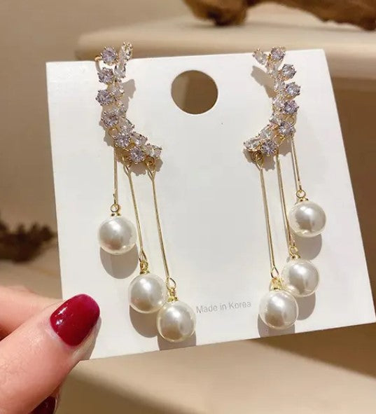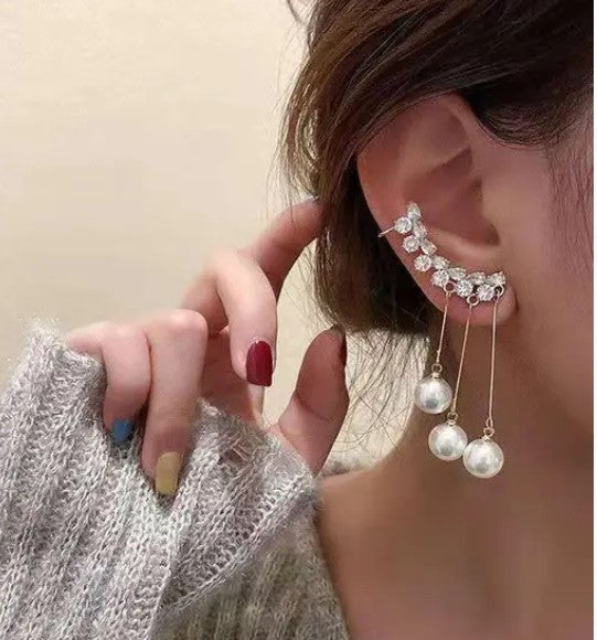 Korean-Style Ear Cuff with Pearl Tassel Drops