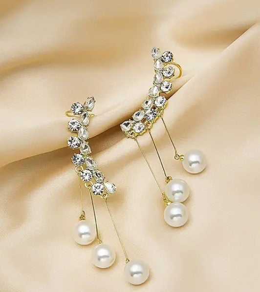 Delicate yet striking, these Korean-style ear cuffs feature elegant pearl tassels and sparkling Cubic Zirconia (American Diamonds). Designed in a non-adjustable fit with a lightweight alloy base, they bring sophistication to office wear and charm to casual outfits—perfect for both day and evening looks. A thoughtful gift for birthdays, weddings, or any special occasion.
