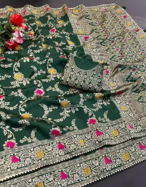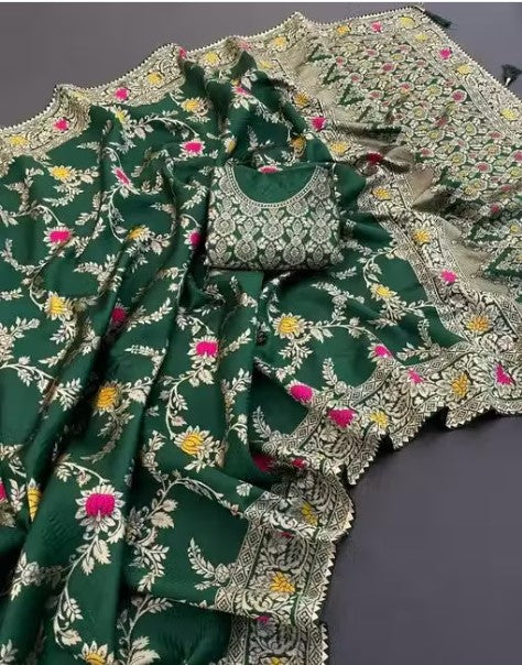 Latest Designer Banarasi Silk Saree for Women With Unstitched (brocade) Blouse Piece
