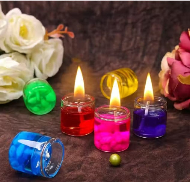 Brighten up your space with these smokeless, handcrafted gel candles in multicolour glass jars. Perfect for Diwali, spa vibes, parties, or elegant home décor. A beautiful blend of style and serenity in every pack.