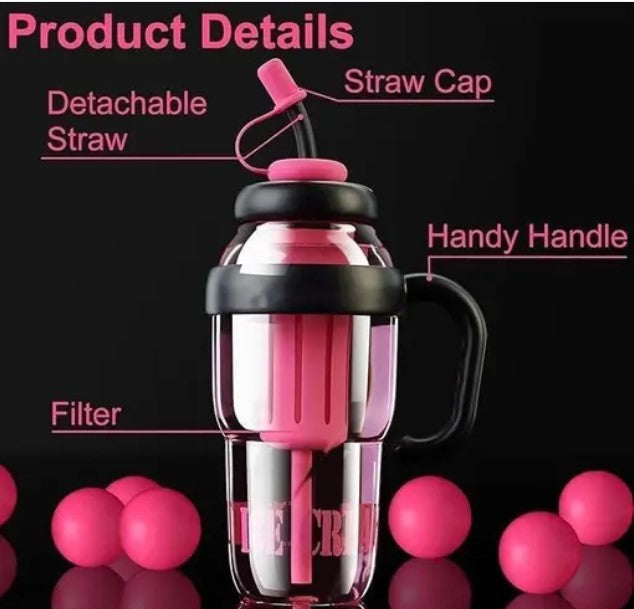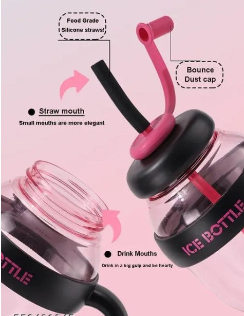 Stay hydrated in style! This high-capacity water bottle features a built-in straw and sturdy handle—perfect for gym, office, travel, or summer outings. Durable, easy to carry, and fun to use.